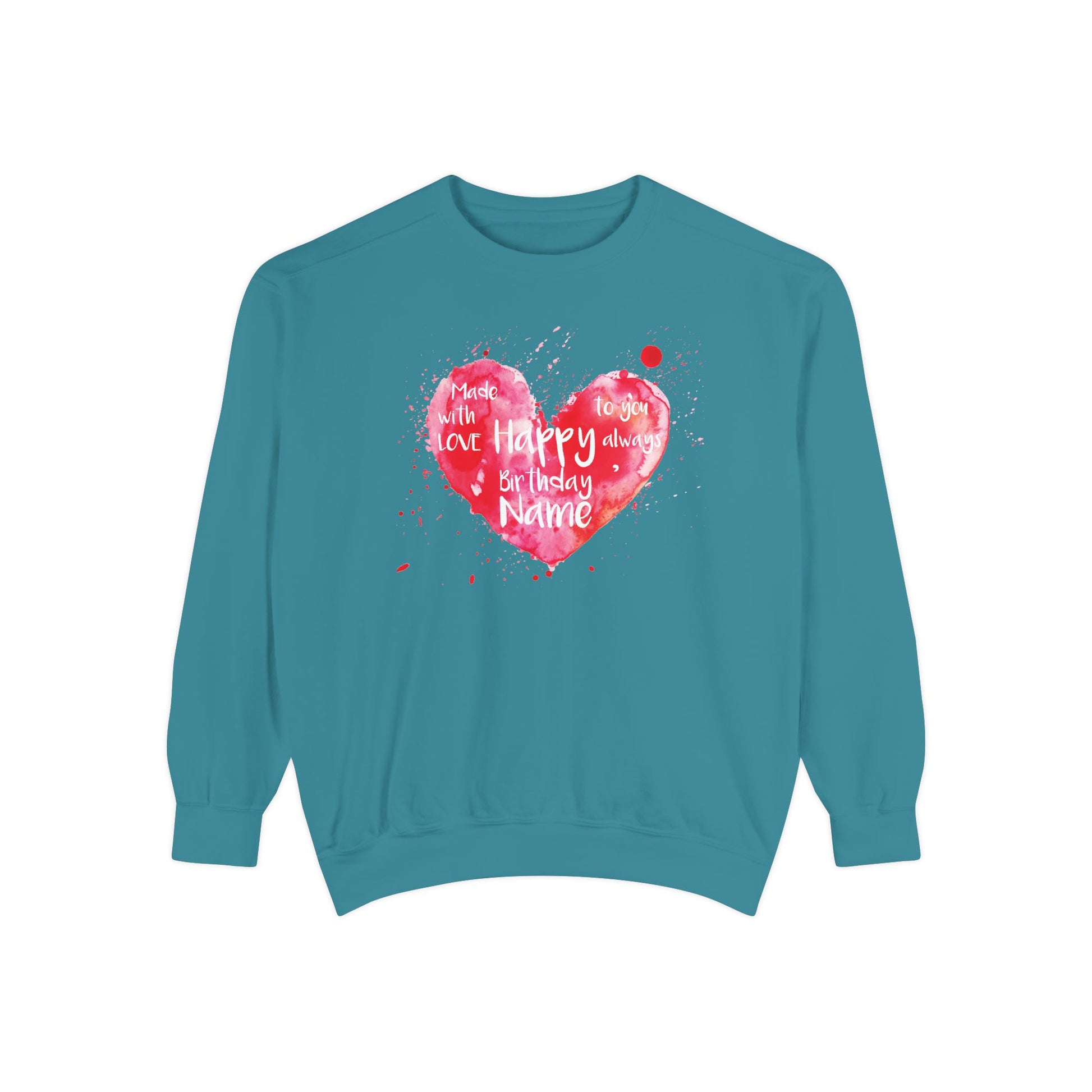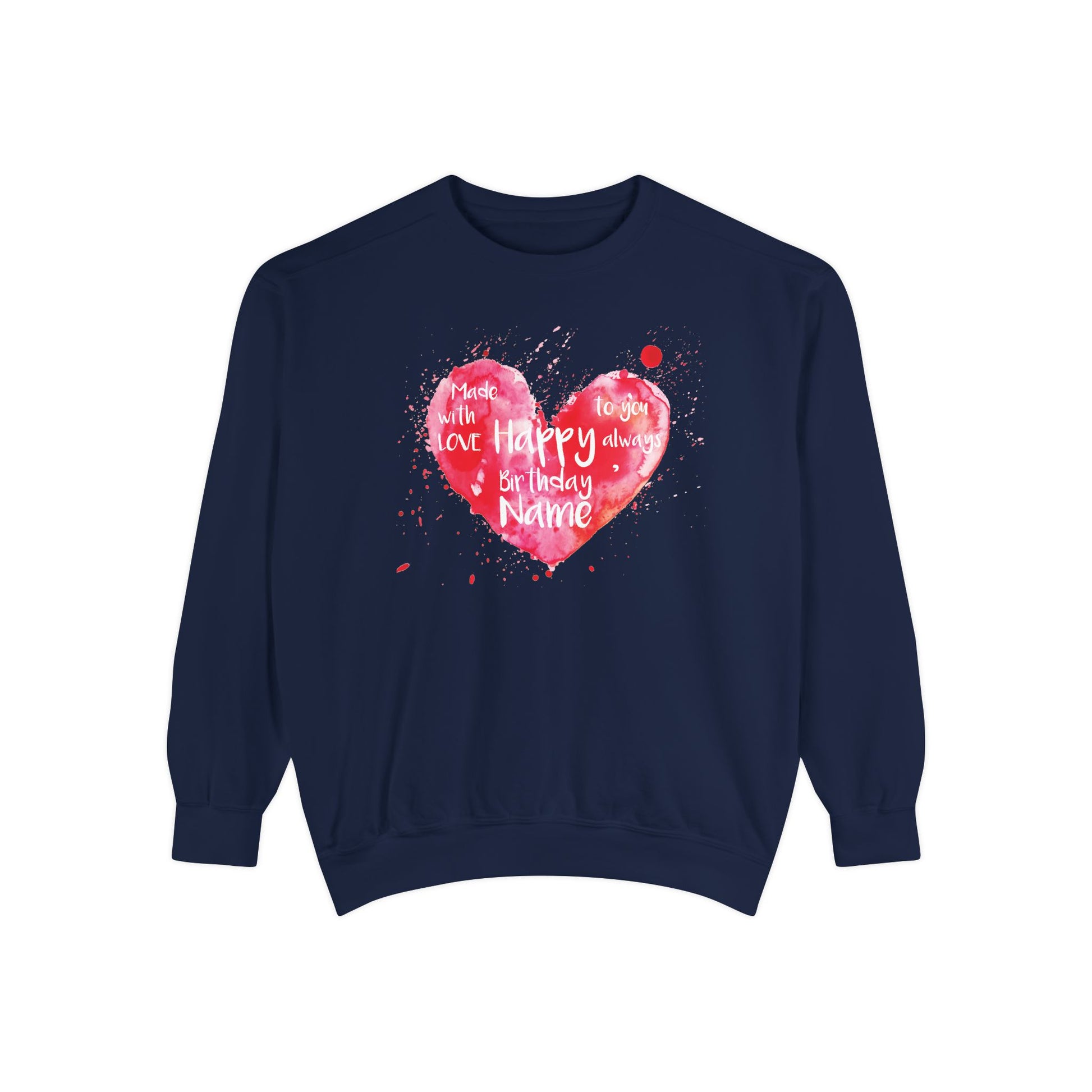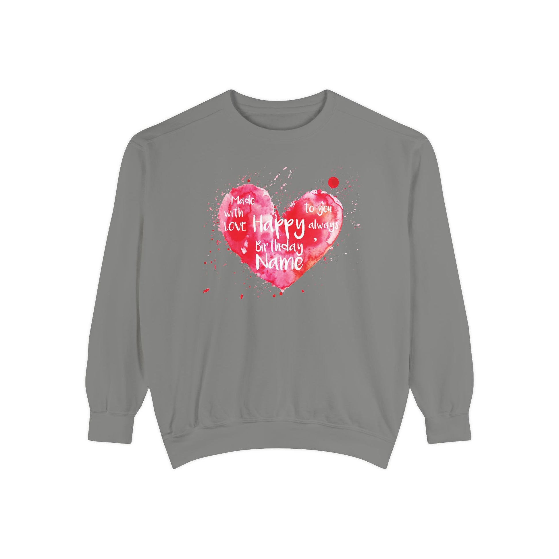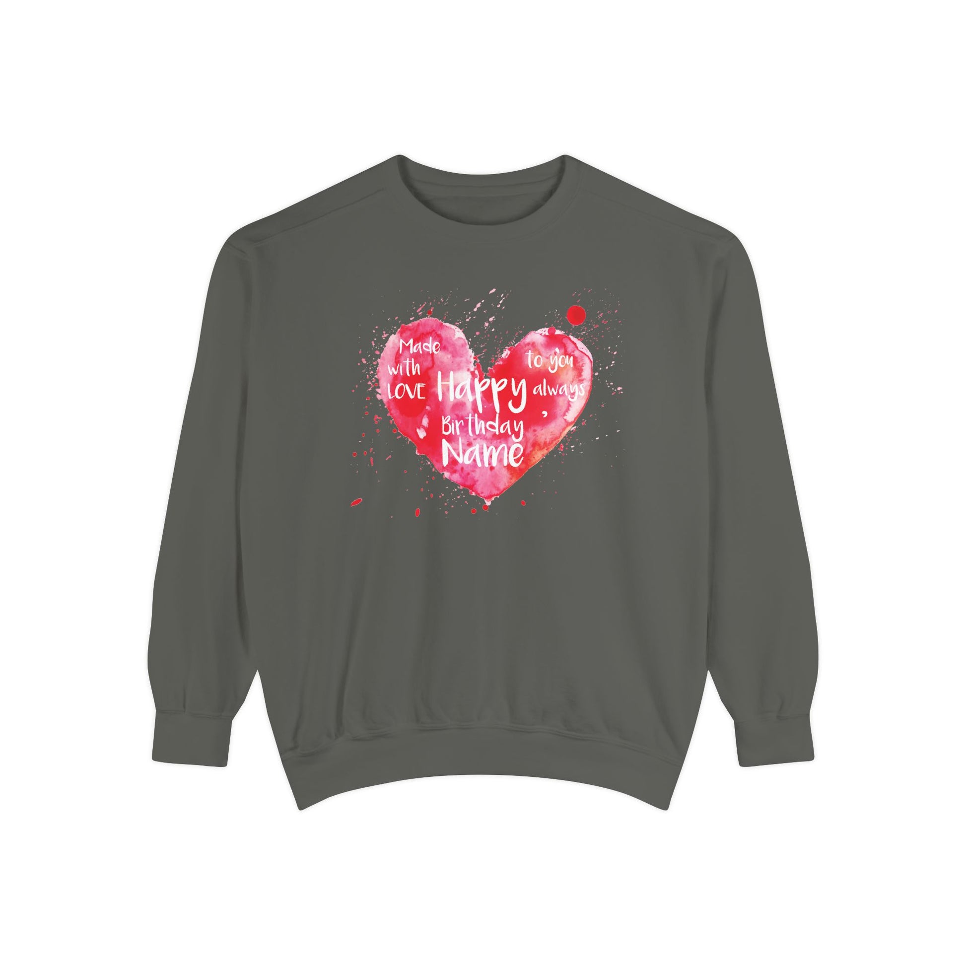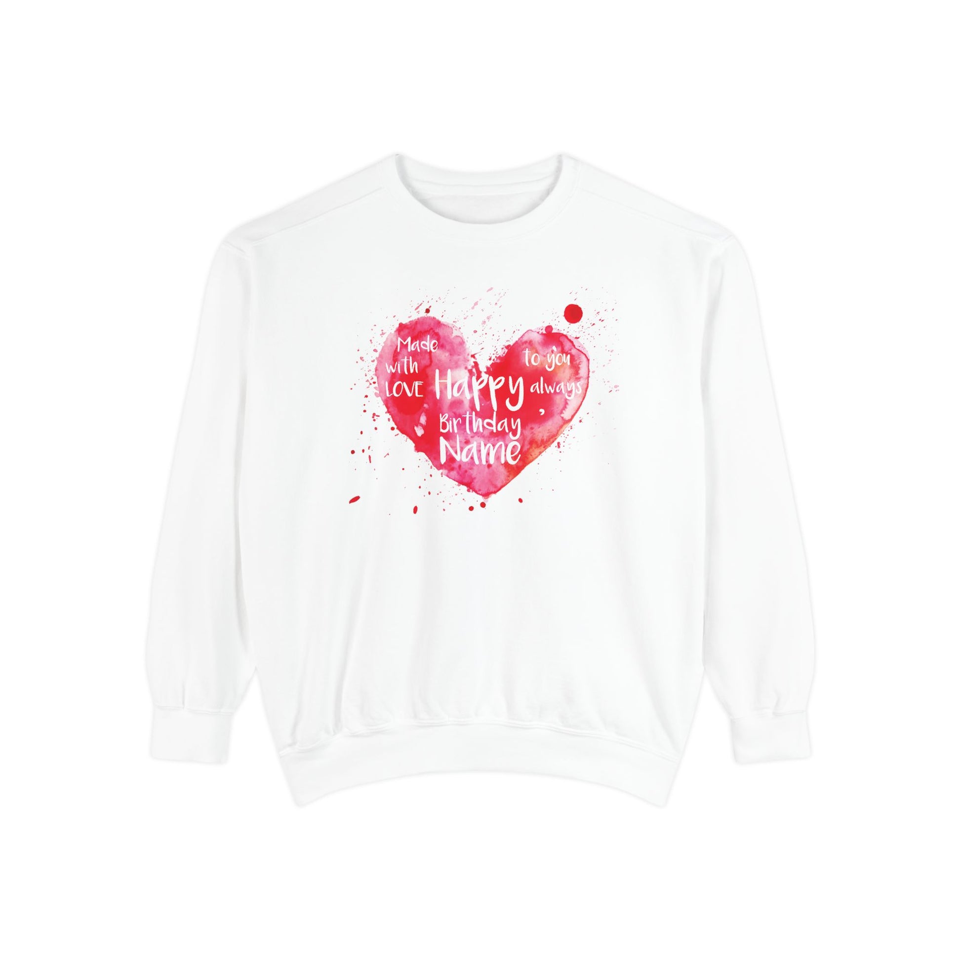 Garment-Dyed Sweatshirt: "Made with Love, Happy Always"