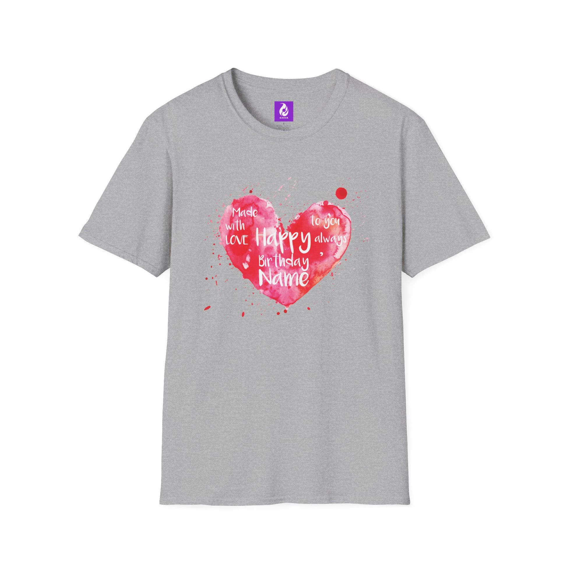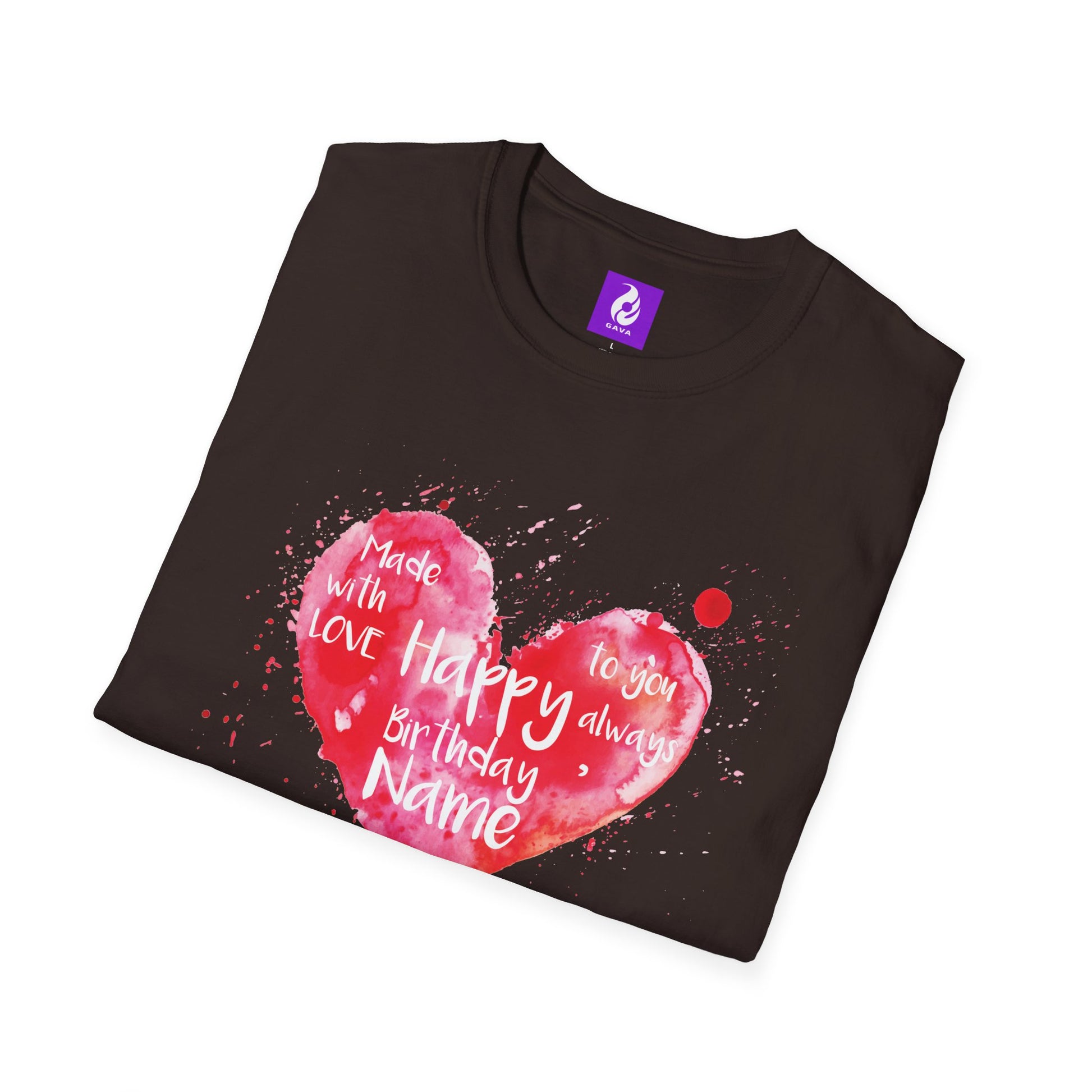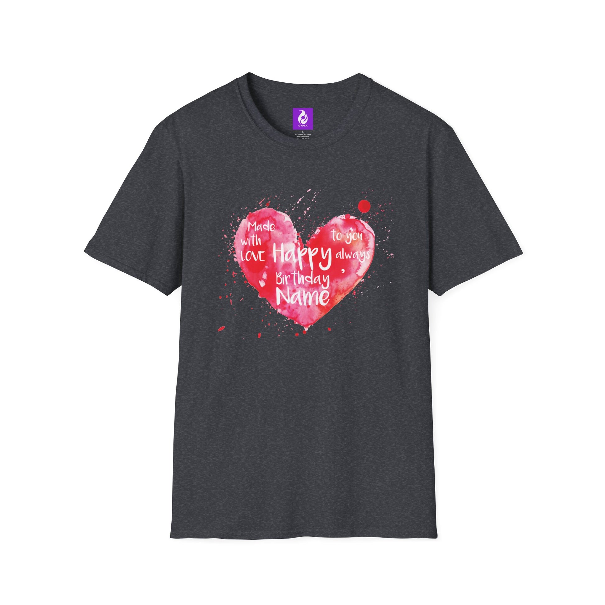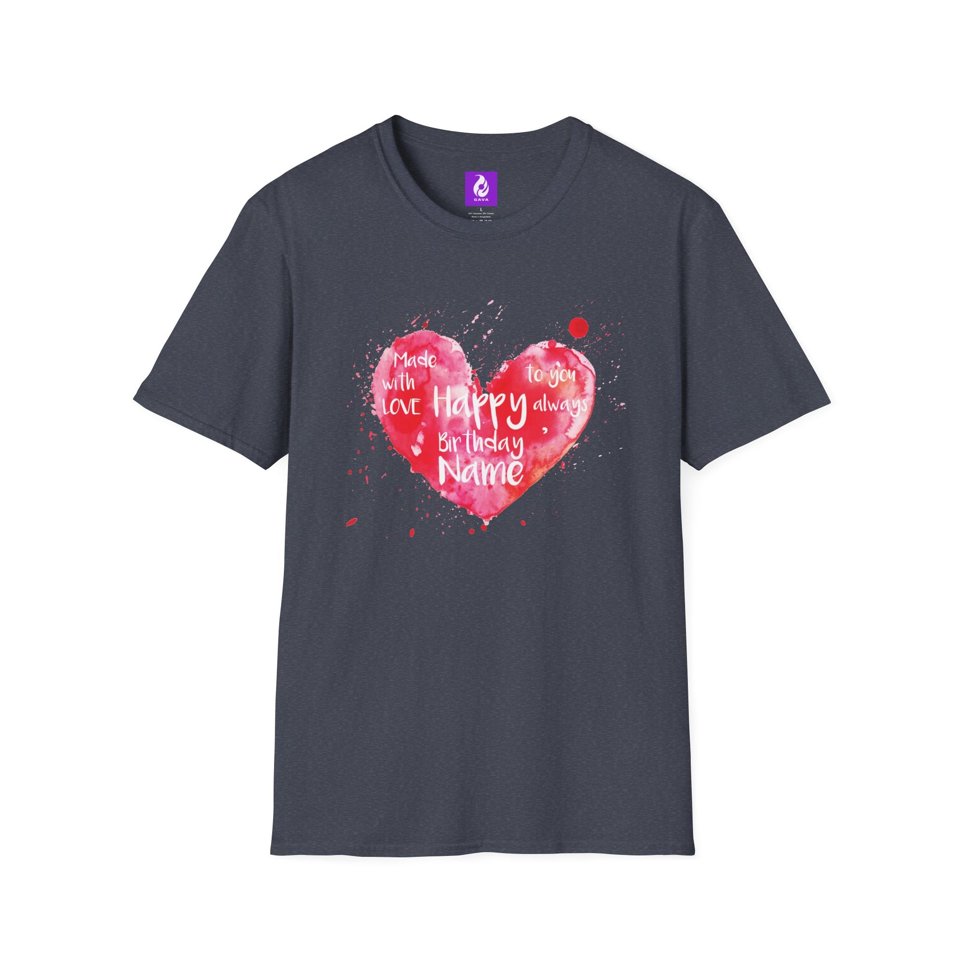 Personalized Birthday Love Heart Unisex T-Shirt – Softstyle Tee with Custom Name