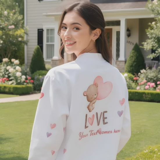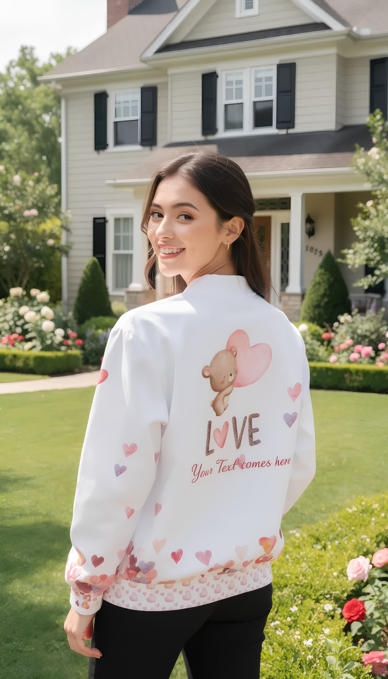 Personalized Love Design Bomber Jacket – Custom Heart & Bear Art | Gava Studio