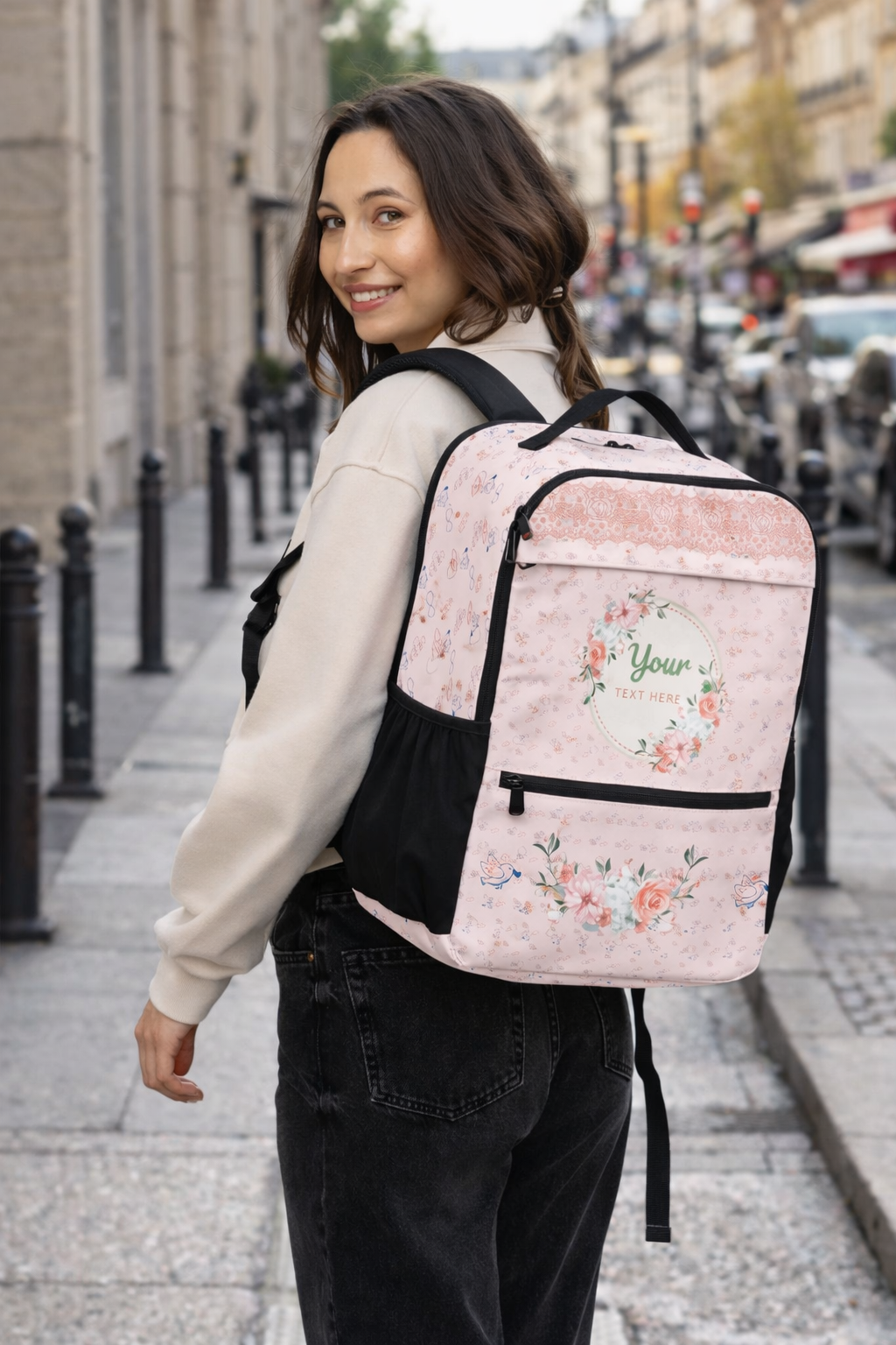 Personalized Floral Utility Backpack | Custom Text & Elegant Art Design by Gava Studio